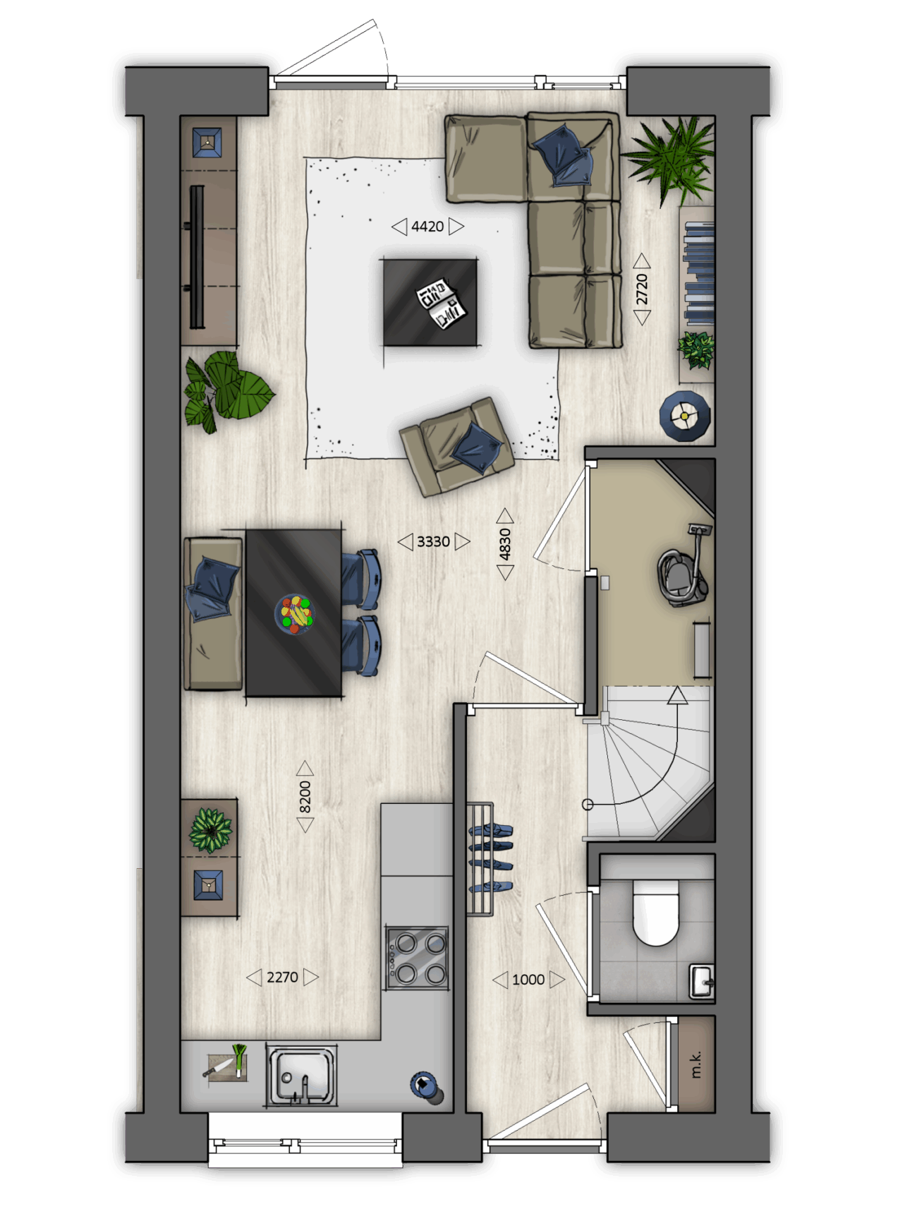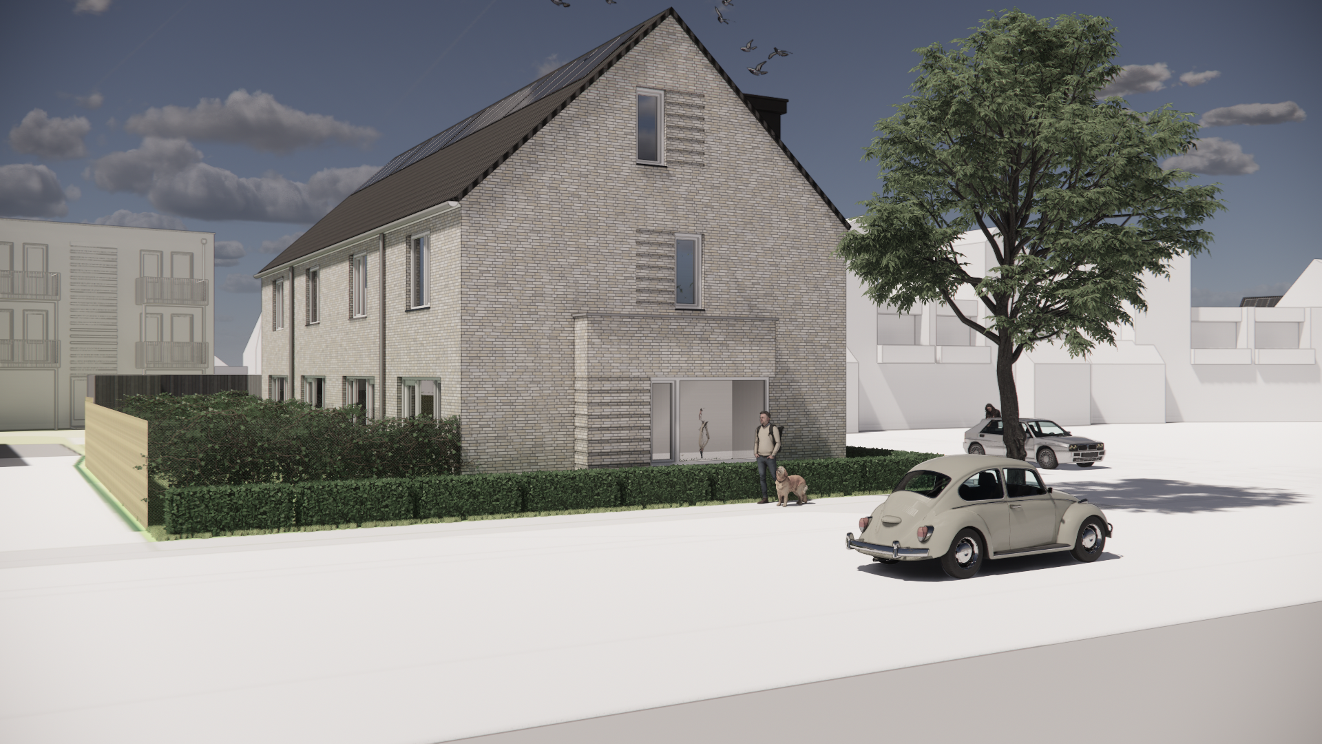 De impressies geven een goed beeld van de woningen maar behoren niet tot de verkoopstukken. De impressies kunnen afwijken van de verkooptekeningen. De verkooptekeningen en de technische omschrijving geven het meest accurate beeld van de woningen en zullen onderdeel zijn van de koop-aanneemovereenkomst. Aan de impressies kunnen geen rechten worden ontleent.